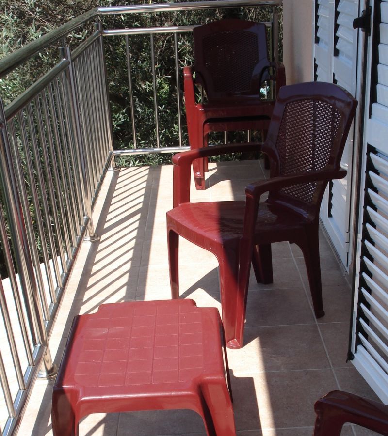 Accommodation type: apartment (50 m2), 1/4+1. Structure: living room area with kitchen and and dining table, two bedrooms, bathroom, terrace. Sleeping capacity: up to 5 persons [one double bed, two single beds, one double sofa-bed]. View: partly sea view (S/V). Air-conditioning: yes. TV: yes. Wireless Internet: yes.